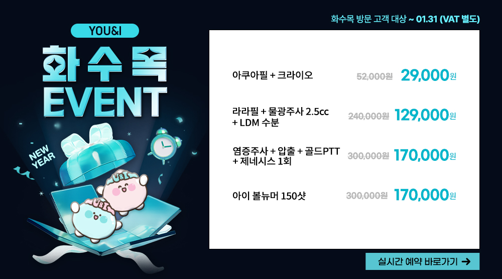 화수목) 염증주사 + 압출 + 골드PTT + 제네시스 1회