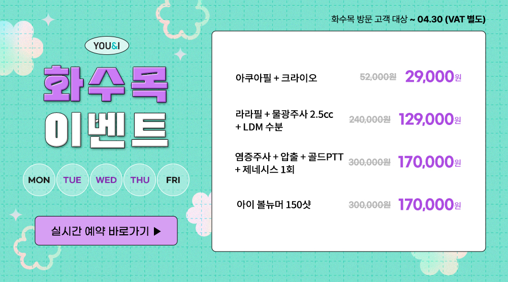 [유앤아이케어구독패키지] 아쿠아필 / 이온토비타민관리 / 수분소노케어 / 진정크라이오 10회